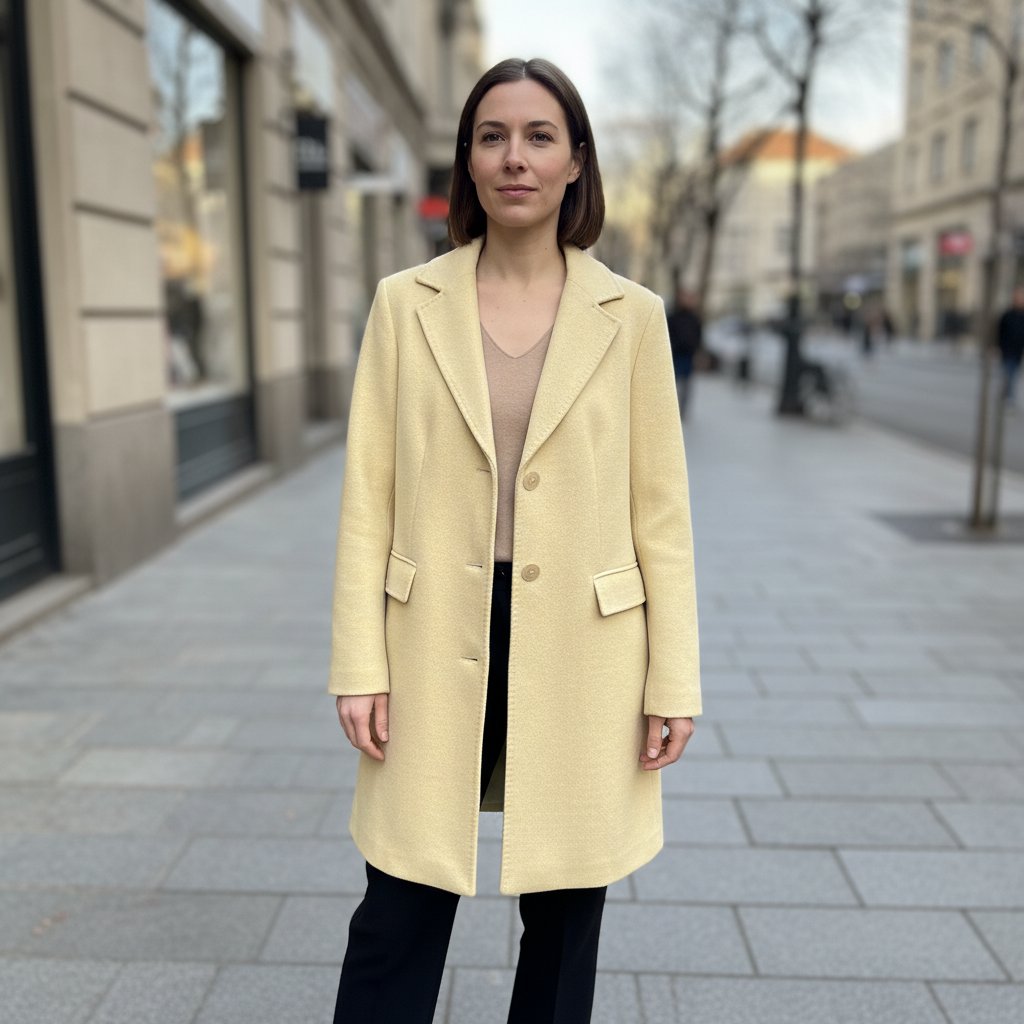 Luxusní krémový kabátek žluté barvy v prémiové kvalitě Itálie.