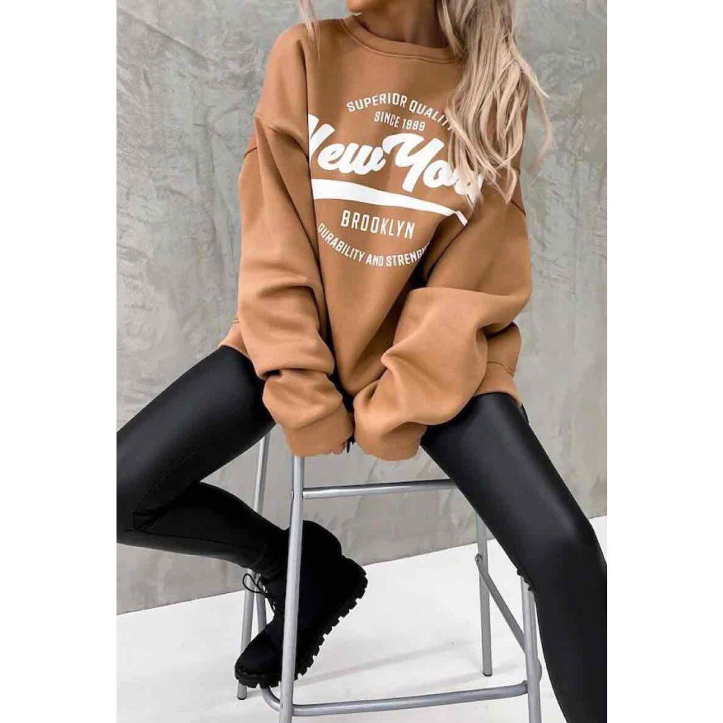 Tepláková mikina New York béžová dlouhá