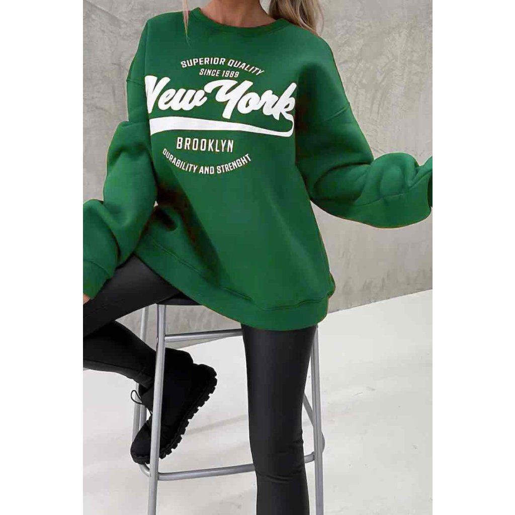 Tepláková mikina NEW YORK v zelené barvě v universální velikosti. Pánská zelená mikina v universální velkosti má klasický střih, tudíž padne každému. Je doplněna klokaní kapucí a hodí se jak na každodenní nošení, tak například ke sportu. Díky teplákovému materiálu se hodí do chladného počasí.